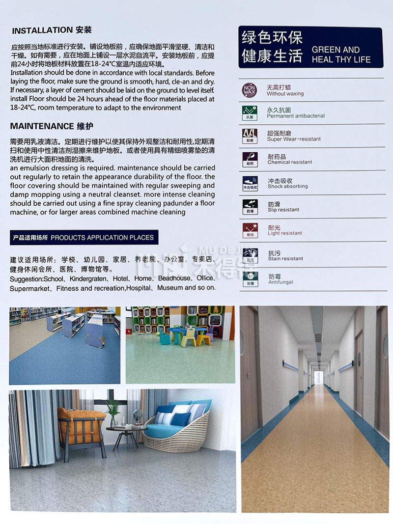 加強(qiáng)型致密結(jié)構(gòu),耐磨(T級(jí)),使用,壽命長(zhǎng),免打蠟;