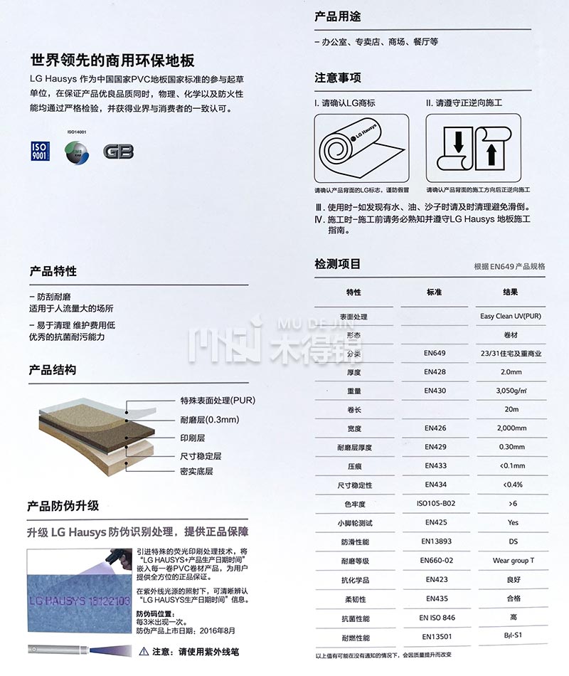 產(chǎn)品厚度:2.0mm 耐磨層厚度:同質(zhì)透心